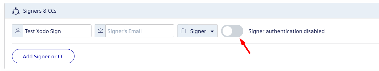 1. Once you add your contacts, simply click on the Enable button next to the "Signer authentication disabled" prompt: