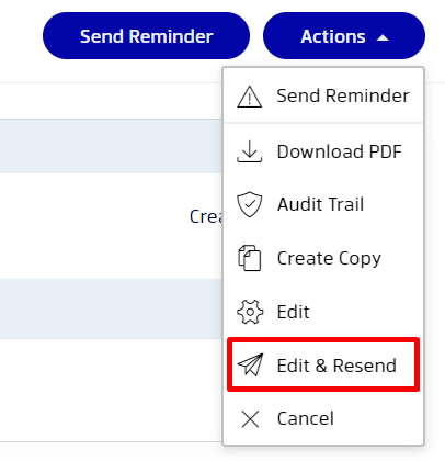 1. Access the document and from the Actions menu select Edit & Resend