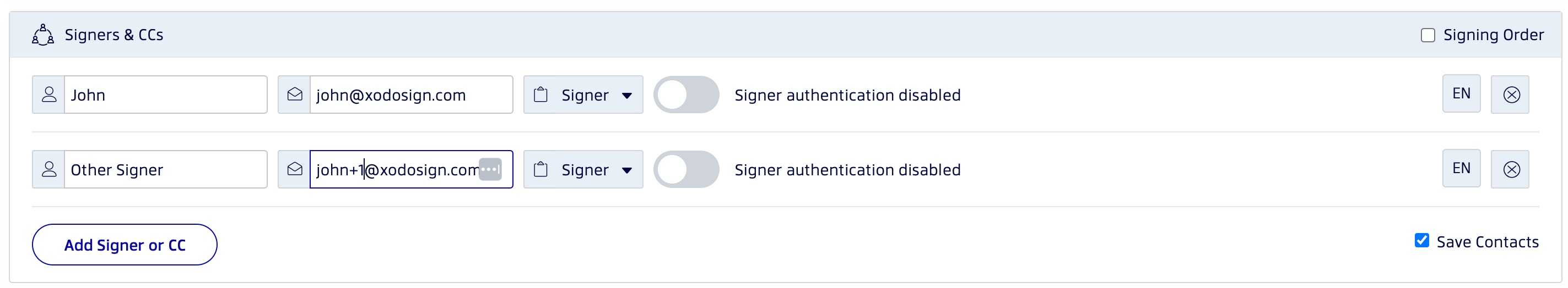 Like that you can send 2 or more e-mails to the same address with Xodo Sign.