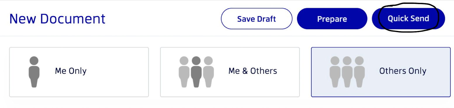 Whenever there is little time for carefully preparing a document for your signers, the Quick Send option can be used to skip the Document Editor and send a document right away. By Quick Sending a document you agree that Xodo Sign will automatically attach an additional page to your document containing date and signature fields for each signer specified.